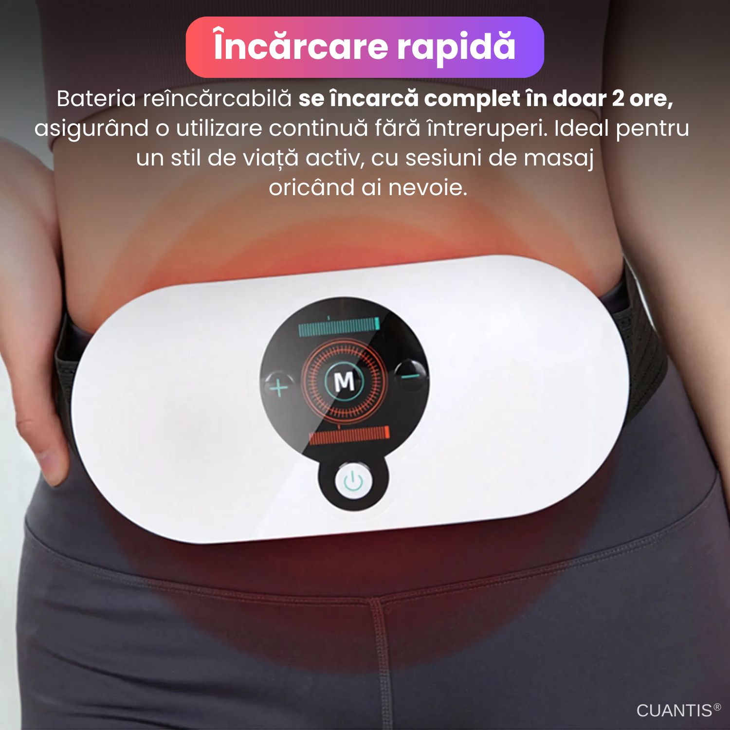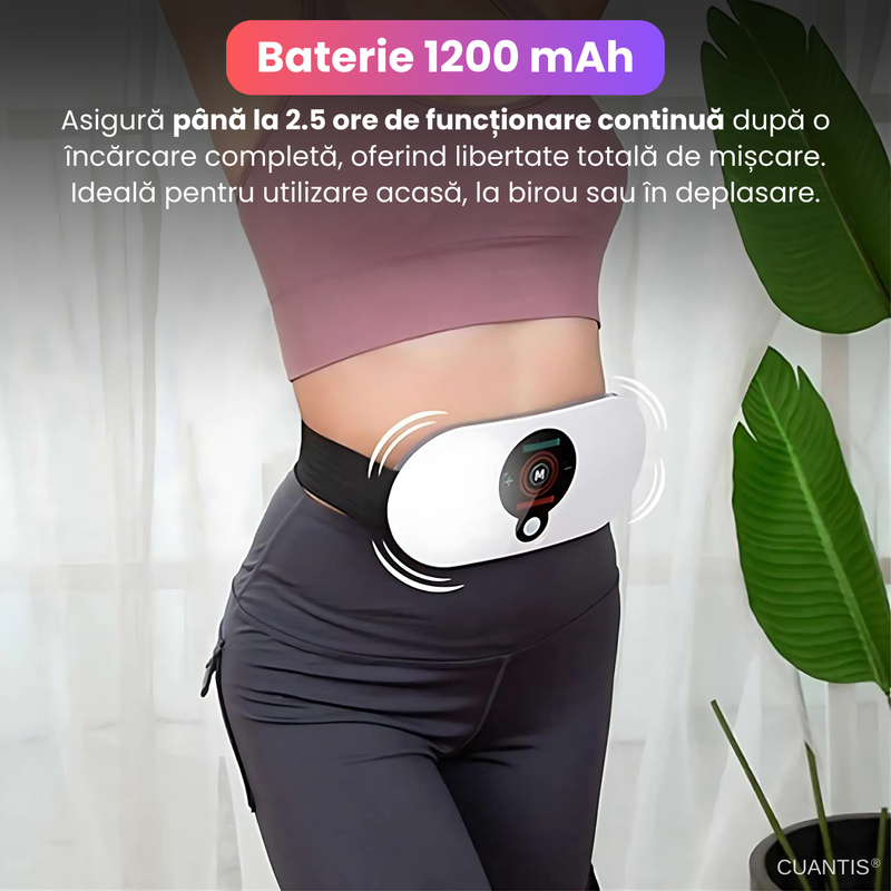 O centură EMS cu masaj, vibrații și încălzire infraroșu.