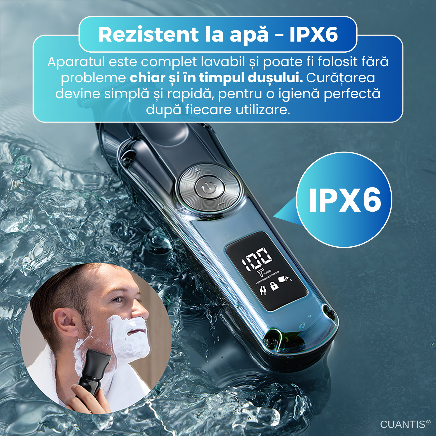 Intregul aparat este lavabil si poate fi curatat cu usurinta sub jet de apa. Poate fi folosit atat pe par uscat, cat si in timpul dusului, asigurand igiena completa dupa fiecare utilizare.