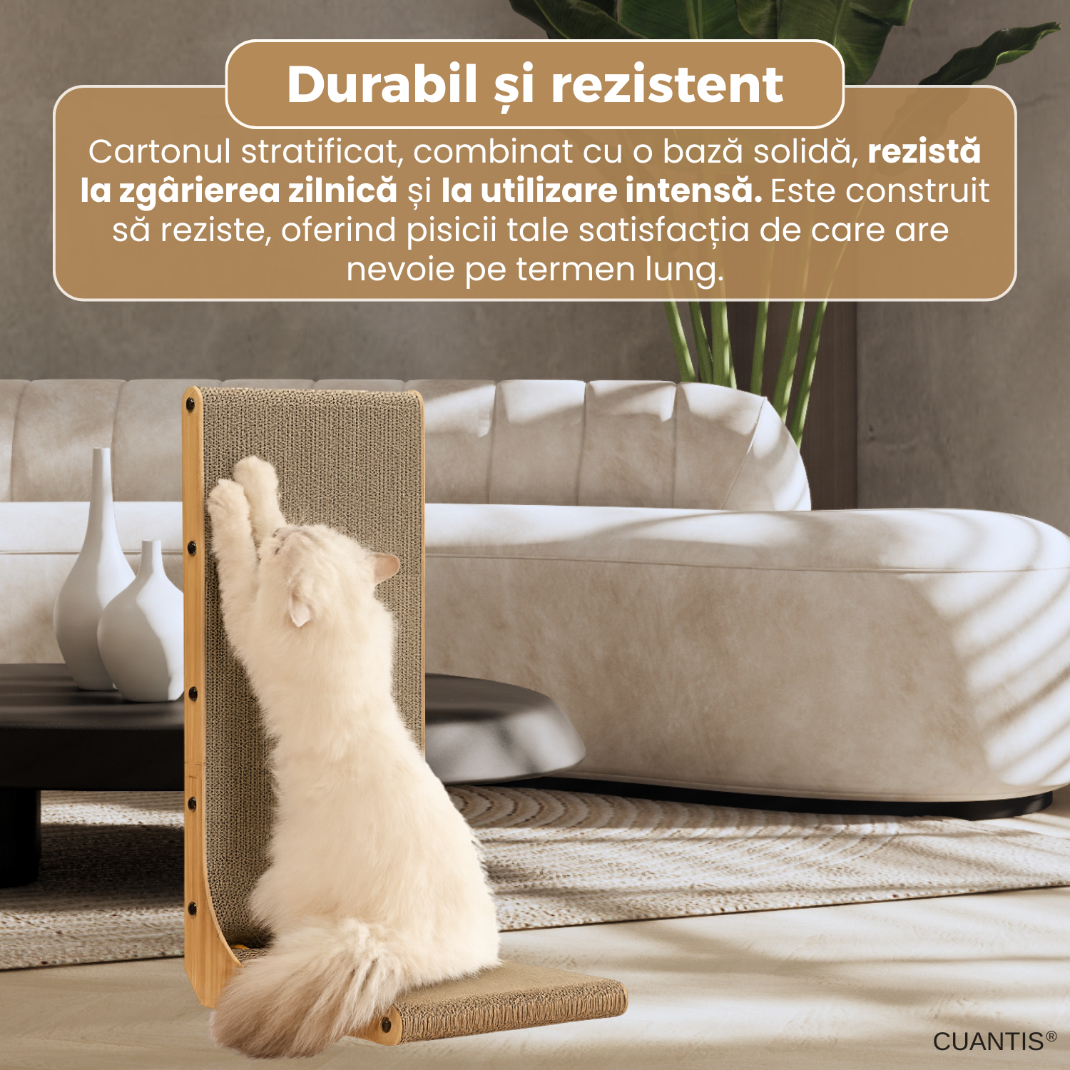 Cartonul stratificat de inalta calitate este special conceput pentru a rezista zgarierii zilnice si pentru a asigura o utilizare indelungata. Chiar si in cazul unei pisici active sau al mai multor animale, structura placii ramane ferma si eficienta, fara sa se deterioreze rapid.