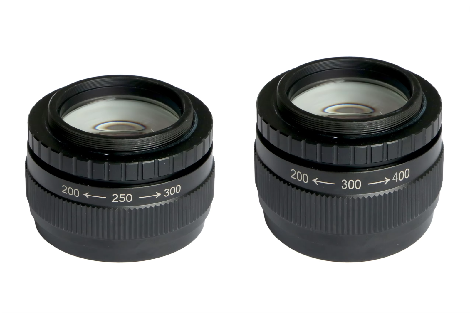 Lentilă zoom ajustabilă cu domeniu focal între 200 mm–300 mm sau 200 mm–400 mm, destinată utilizării în echipamente optice specializate. Produsul oferă posibilitatea de reglare a distanței/zoom-ului în intervalul specificat și este compatibil cu diverse microscoape și sisteme optice de brand.