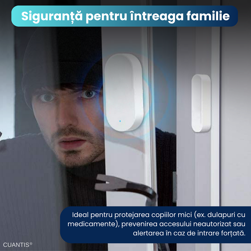 Este ideal pentru parintii care doresc sa previna accesul copiilor mici la dulapuri cu medicamente, produse de curatenie sau alte obiecte periculoase. De asemenea, ajuta la monitorizarea usilor si ferestrelor, oferindu-ti alerte imediate in cazul unei deschideri neautorizate, chiar si atunci cand nu esti acasa.